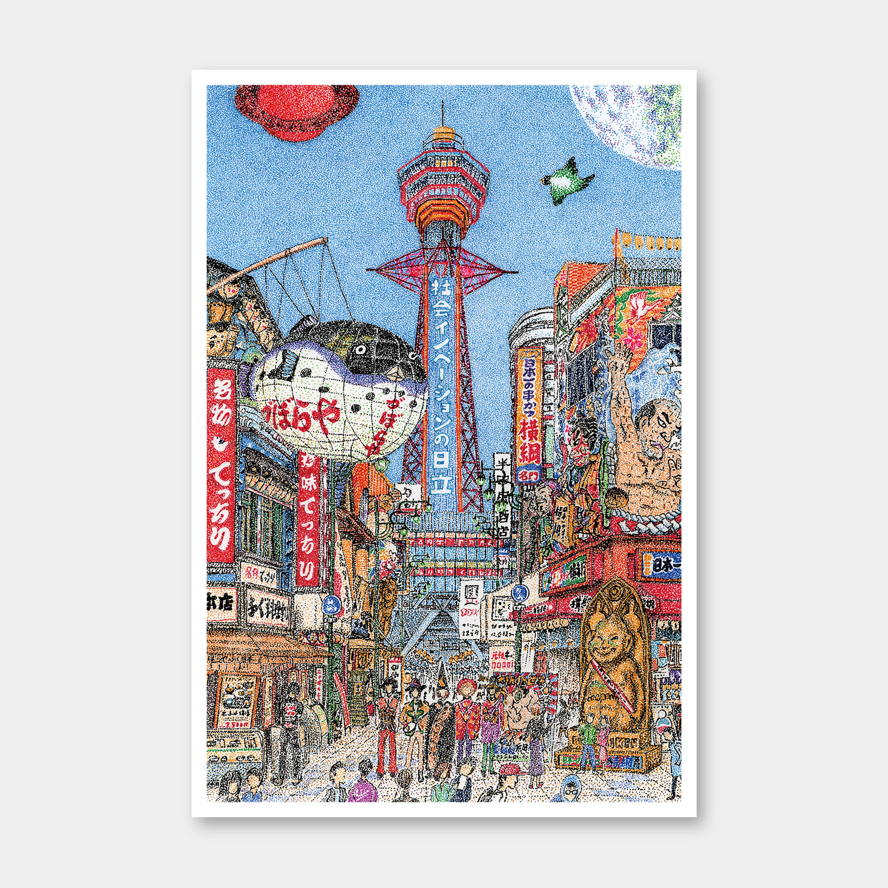 真ん中には〝大阪のシンボル〟としてそびえ立つ通天閣、そして両脇にはデコレーション看板がにぎにぎしく軒を連ねています。大阪らしい元気の出る一枚となりました。
