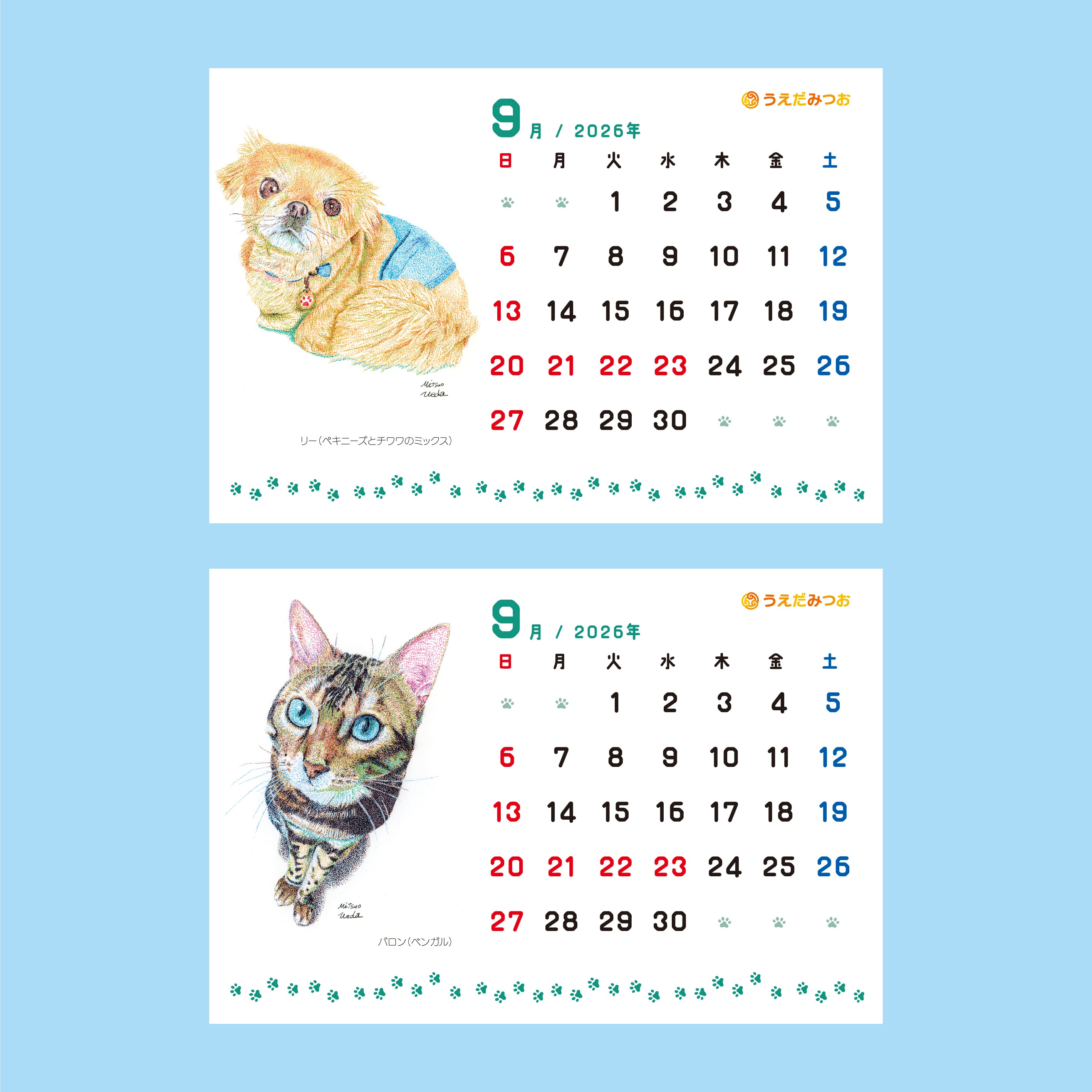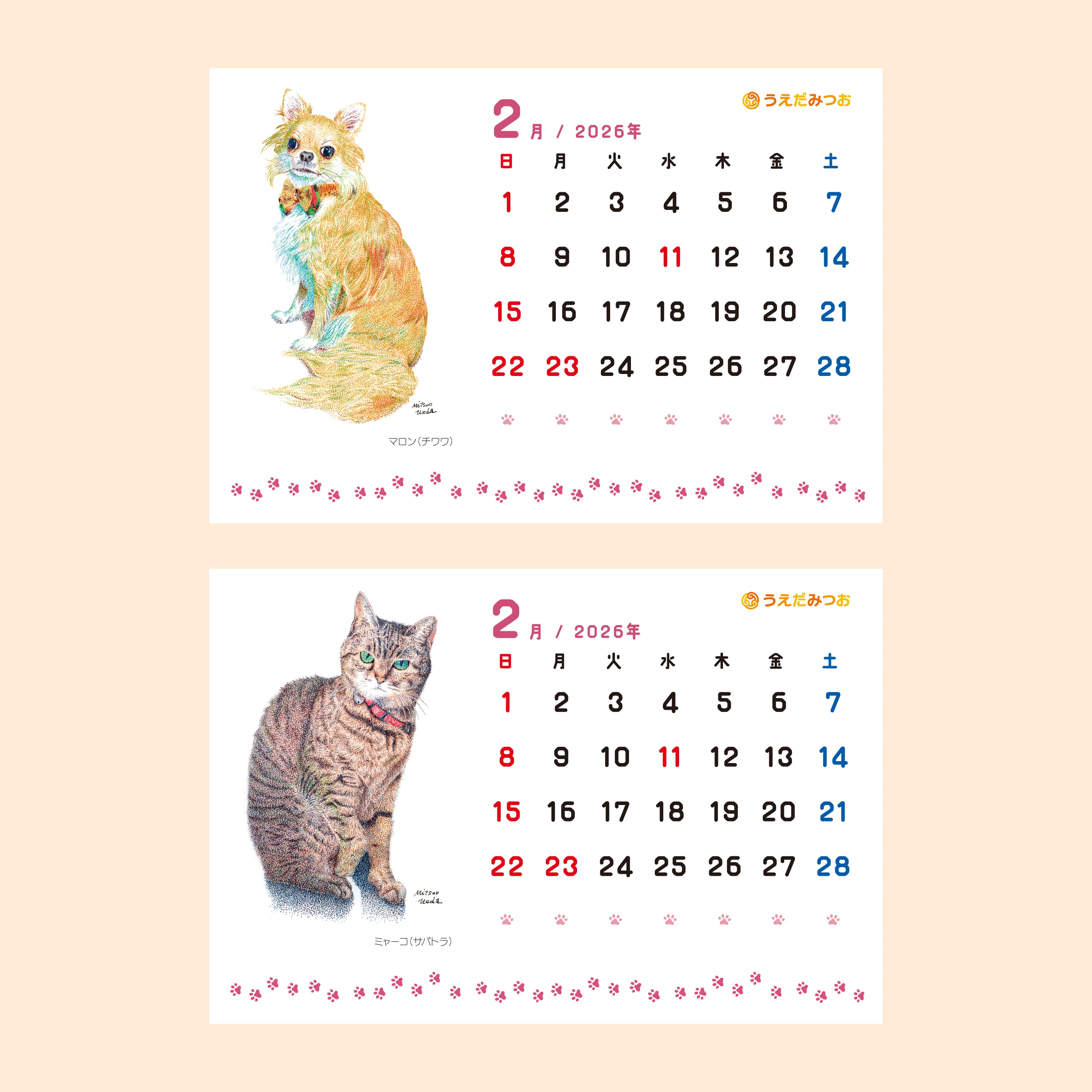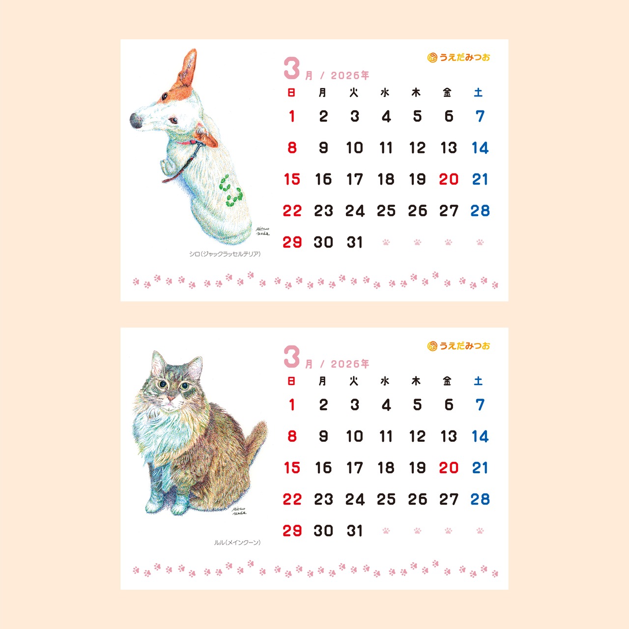 【商品概要】2026年の愛犬愛猫カレンダーが登場しました!愛らしいペットたちの写真を描いて12か月分取り揃え、毎月癒しのひとときをお届けします。飼い主様の心を豊かにする可愛い犬や猫たちの姿は、特にペット好きの方にぴったりです。